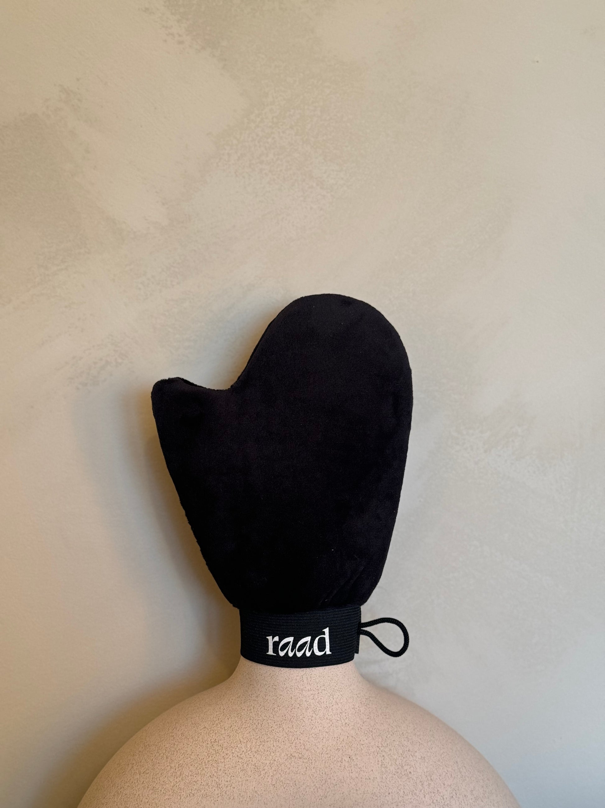 Our dual-sided tan applicator mitt gives you a smooth finish when using tanning products, it’s ideal for applying self-tanners with no streaking or messy palms. Its soft and plush surface glides across the skin ensuring that you achieve the perfectly blended, even tan every time. Quick and easy to use, Raad's SMOOTH sunless tanning mitt protects your hands from any discoloration and can be reused time and time again. It is the perfect partner to our SUN-DRENCHED lotion and HIGH SUMMER mousse! Clean your tanning mitt by hand washing with gentle soap and hang to dry.